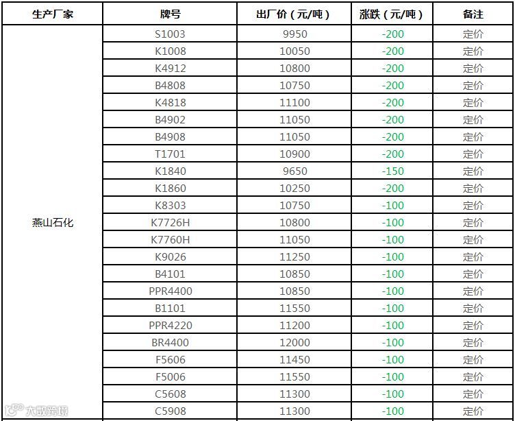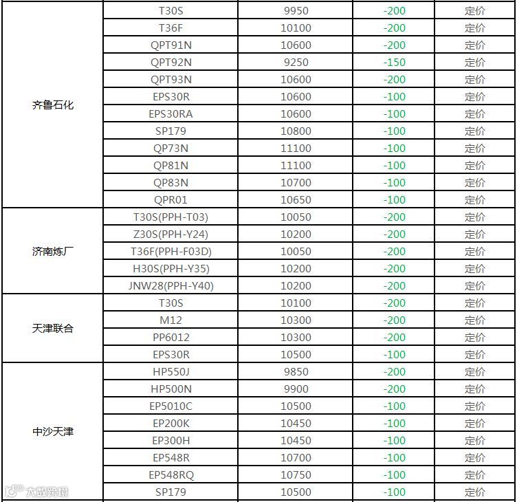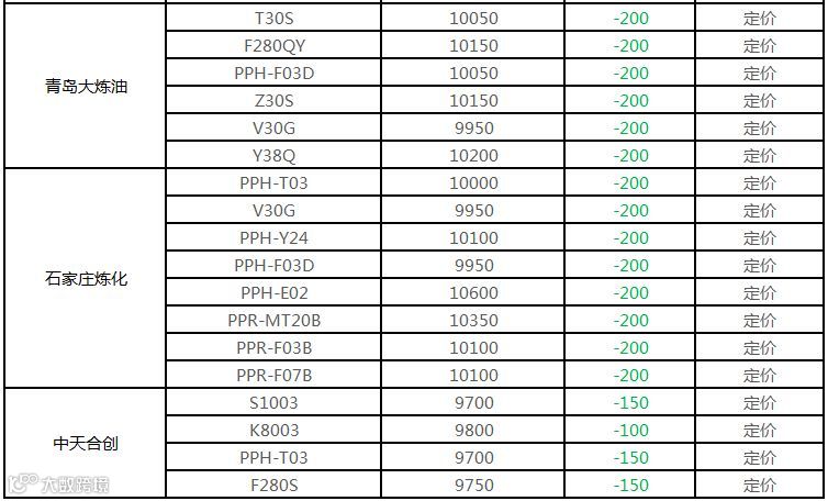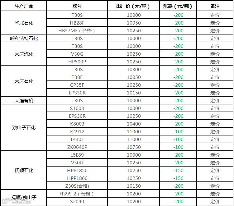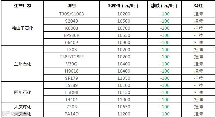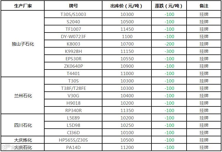 中油西北PP挂牌价格个别下调100元/吨!!!