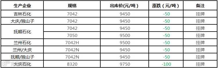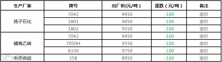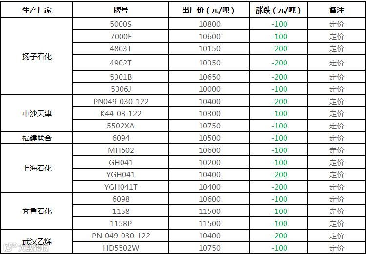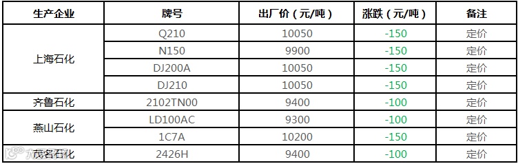 扬子巴斯夫LDPE个别定价下调150元/吨