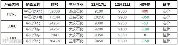 现货市场方面,除PVC货少相对坚挺外,聚烯烃延续震荡走软格局。石化降价范围扩大,PE多数销售公司均有小幅下调。连续降价使得场内货源成本难言支撑。国际油价及期货的双双走跌,使得场内担忧情绪不断加码。持货商纷纷让利出货,市场下行速度加快。然低价成交难以有效放量,下游除必要刚需入市外,其他多谨慎观望为主,场内交投表现清淡。
