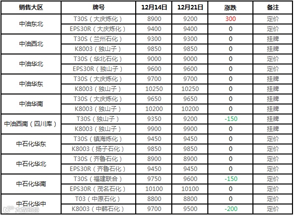 本周拉丝主流价格较上周下跌100-200元/吨不等,低熔共聚主流价格较上周下跌100-150元/吨不等。本周初期货盘面高开上行,一定程度提振现货市场心态,部分贸易商积极高报价格出货;石化出厂价格多数稳定,个别地区小幅调整出厂价格,成本面支撑尚可。临近周末,国际原油大幅下跌,加上期货低开震荡下行,对市场信心造成一定打击;贸易商避险情绪升温,积极小幅让利出货;部分石化出厂价格下调,场内货源成本支撑减弱,进一步拖累市场价格,业者对后市看空心态增重。场内利空因素偏多,下游工厂刚需采购占主导,终端对后市观望氛围浓厚,实盘多商谈而定。我的塑料网(www.myplas.com)预计下周国内PP市场下行为主,价格下调幅度在100-200元/吨左右。