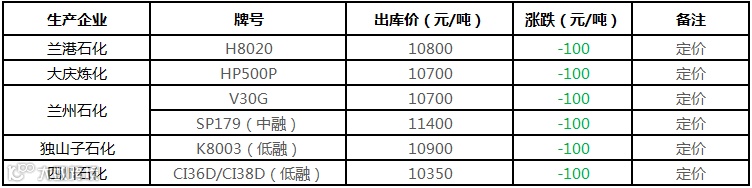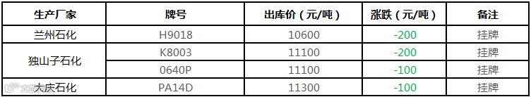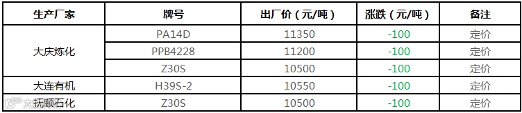 中油东北PP价格部分下调100元/吨!!!