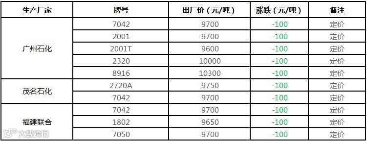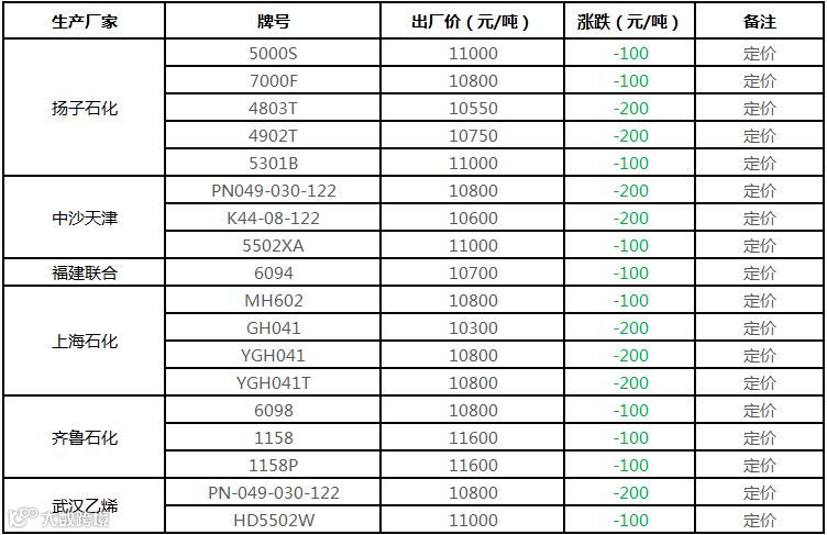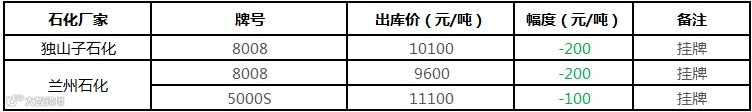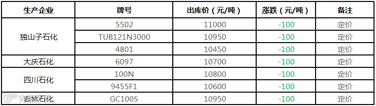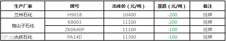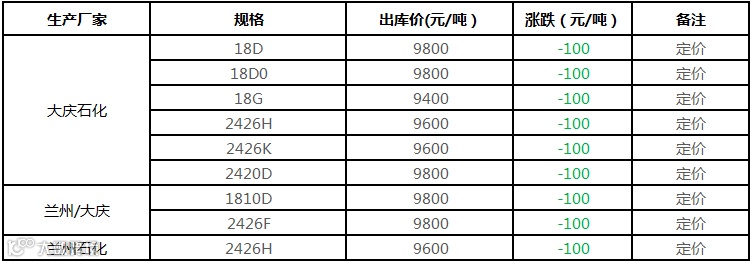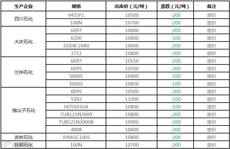 中油东北PE价格部分下调100元/吨!!!