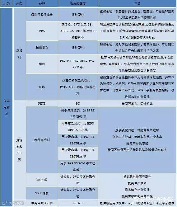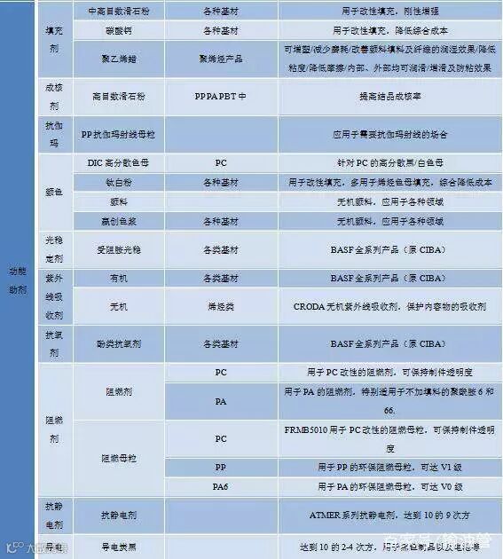 塑料改性助剂指引表格