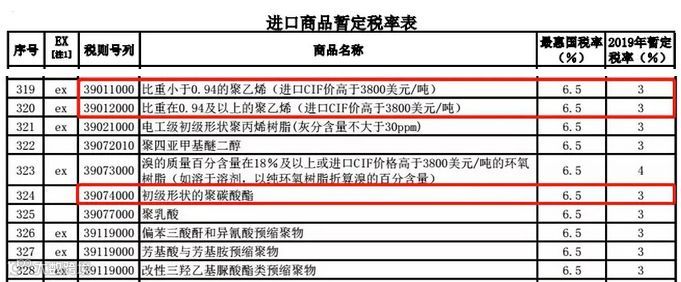 像乙烯、丙烯、氯乙烯等上游原材料的关税都有下调,下游的PE、PP、PS等材料市场应该也会受到影响。此次发布的通知也特别强调了对PS等材料进口关税的调整。