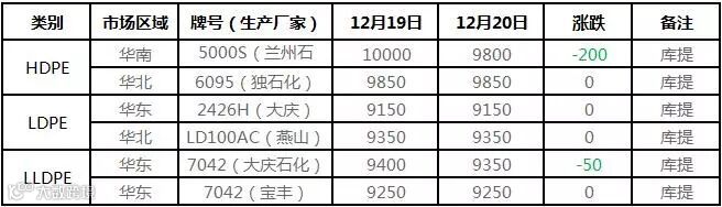 线性主流松动30-100元/吨,日内华北及华东高压部分跌50-100元/吨,低压华北注塑跌100元/吨,华南拉丝跌50-100元/吨。石化个别继续维持下调,部分中油企业出台批量政策,业者报盘跟跌。
