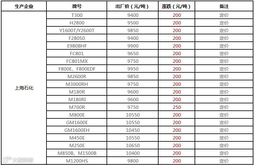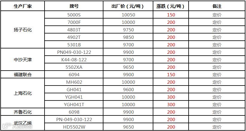 中石化华东HDPE部分定价上调150-300元/吨!!!