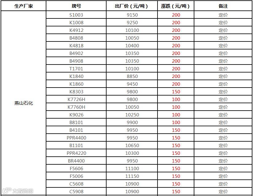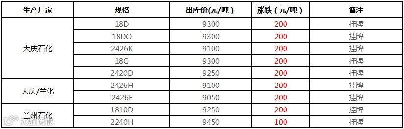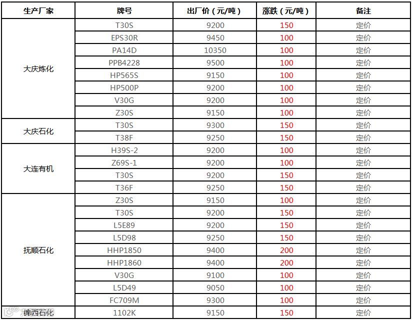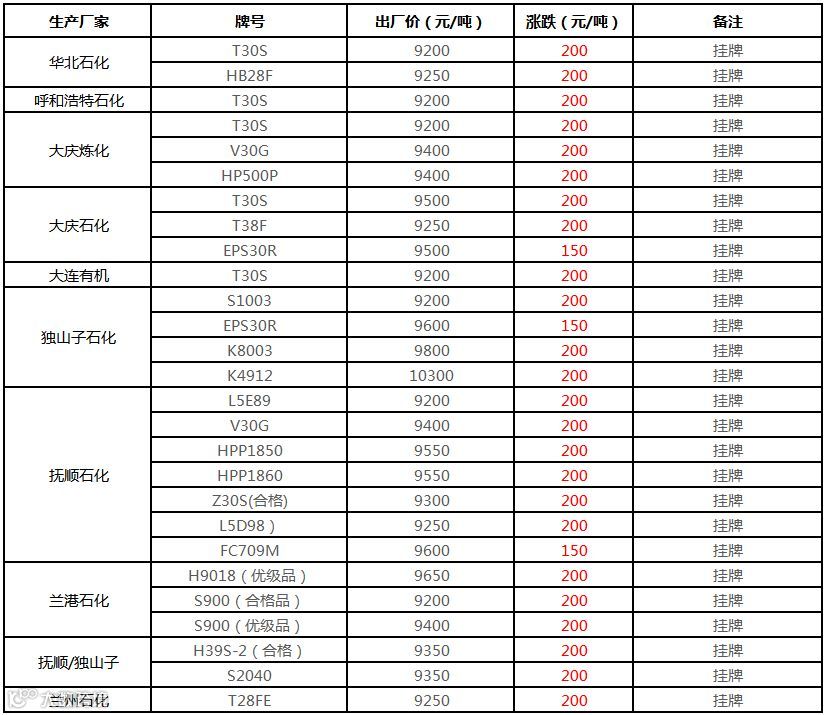 中油华北PP挂牌价格上调150-200元/吨!!!