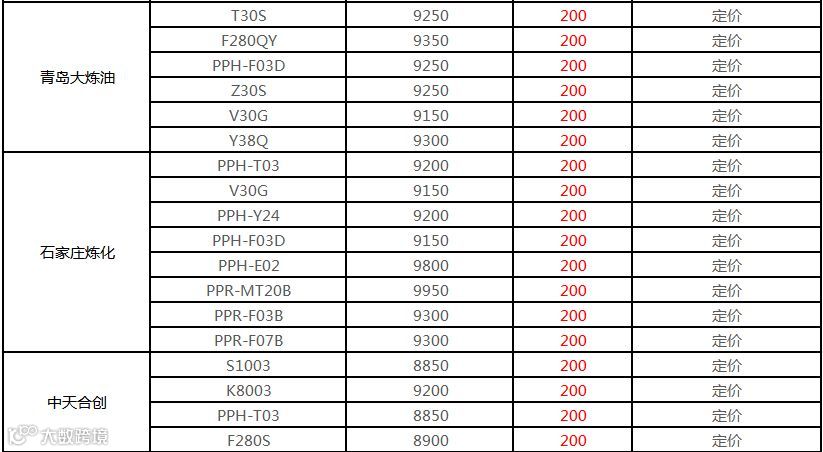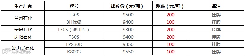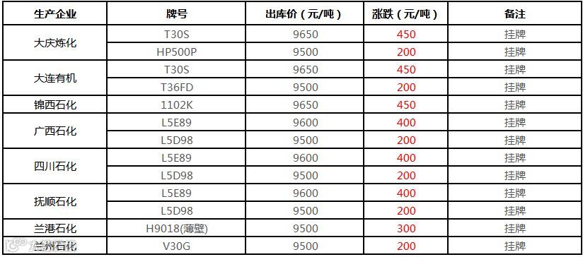 中油华南PP挂牌价格上调200-450元/吨!!!