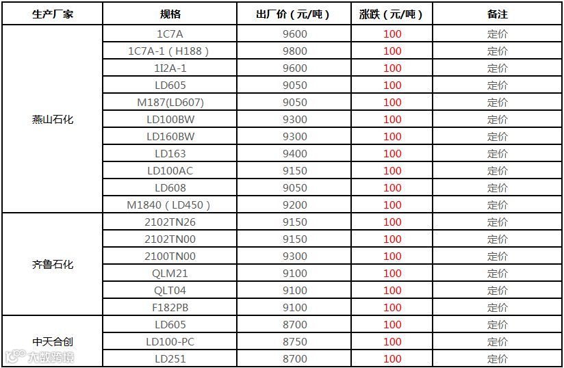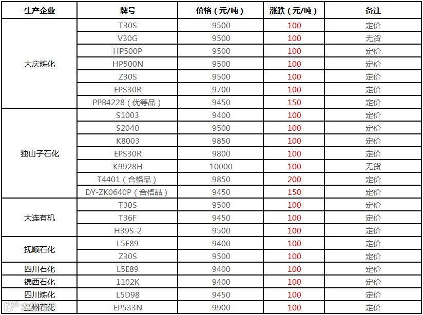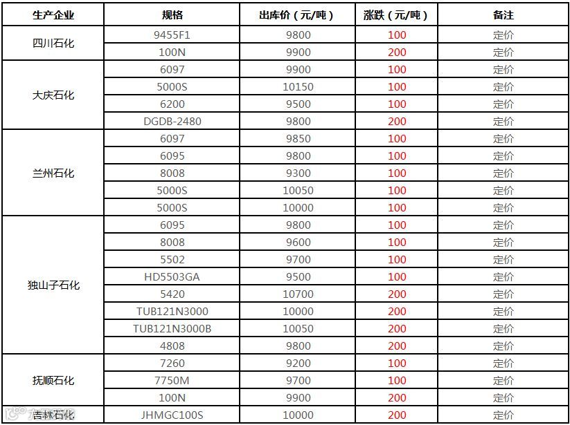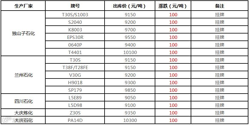 中油东北PE价格普涨100元/吨!!!