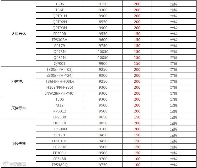 今日厂家聚丙烯产品定价上涨300元/吨:T30S定价在9150/吨,Z30S定价9200元/吨,H30S定价9200元/吨。