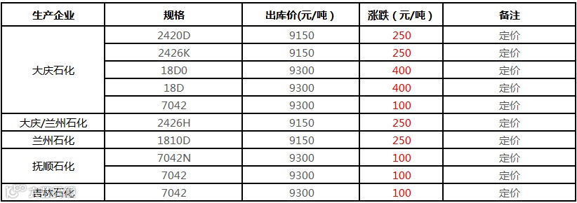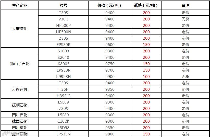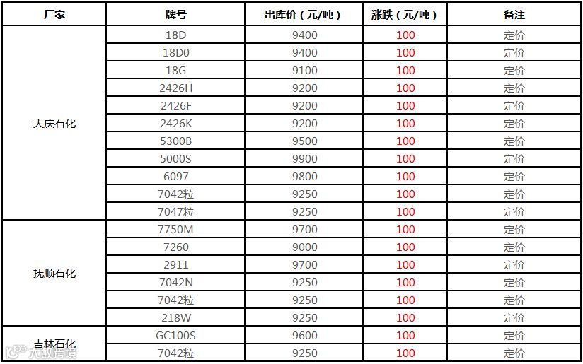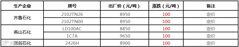 中油东北PE价格上调100元/吨!!!