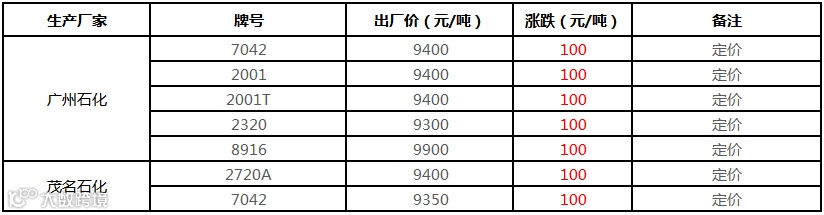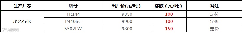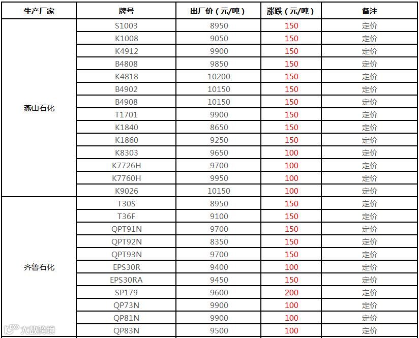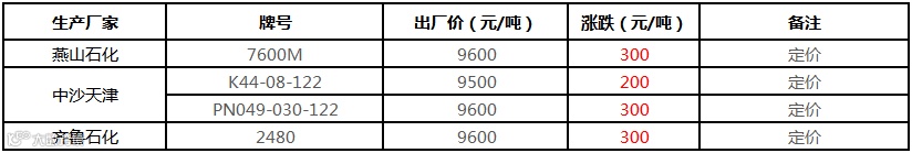 中石化华南PP部分定价上调100-150元/吨!!!