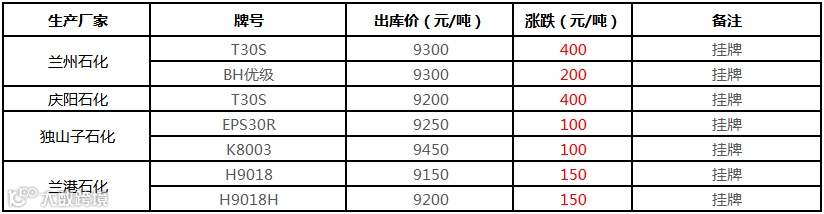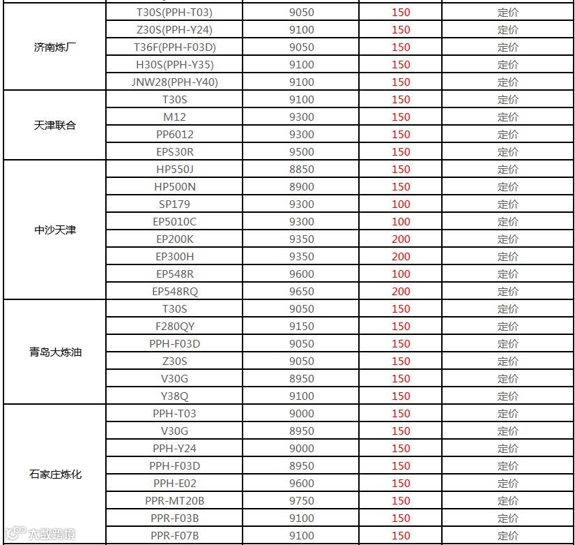 今日厂家聚丙烯产品定价上涨100元/吨:T30S定价在8950/吨,Z30S定价9000元/吨,H30S定价9000元/吨。