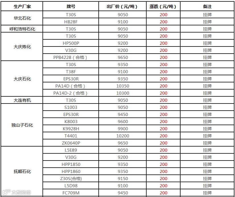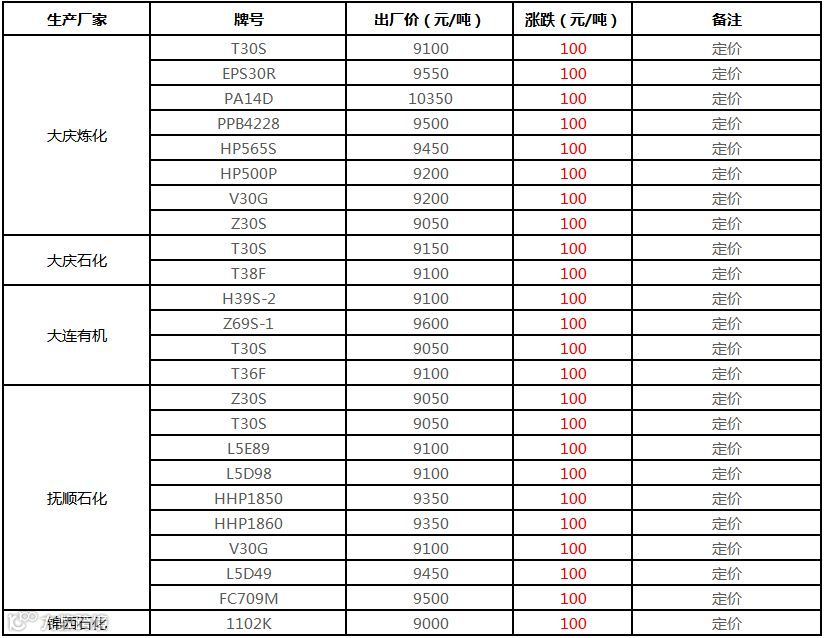 中油东北PP价格上调100元/吨!!!