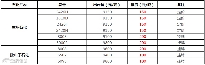 中油西北PE(兰州库)价格部分上调100-200元/吨!!!