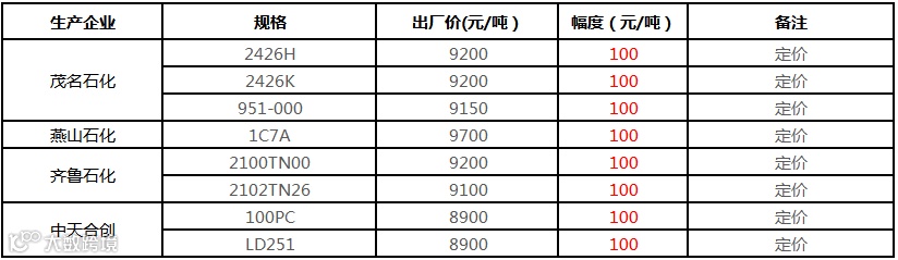 中石化华东LDPE部分定价上调100元/吨!!!