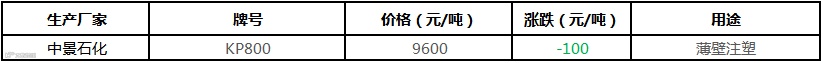中景石化PP出厂价格下调100元/吨