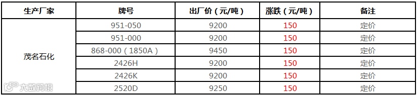 中石化华南PE部分定价上调100-150元/吨!!!