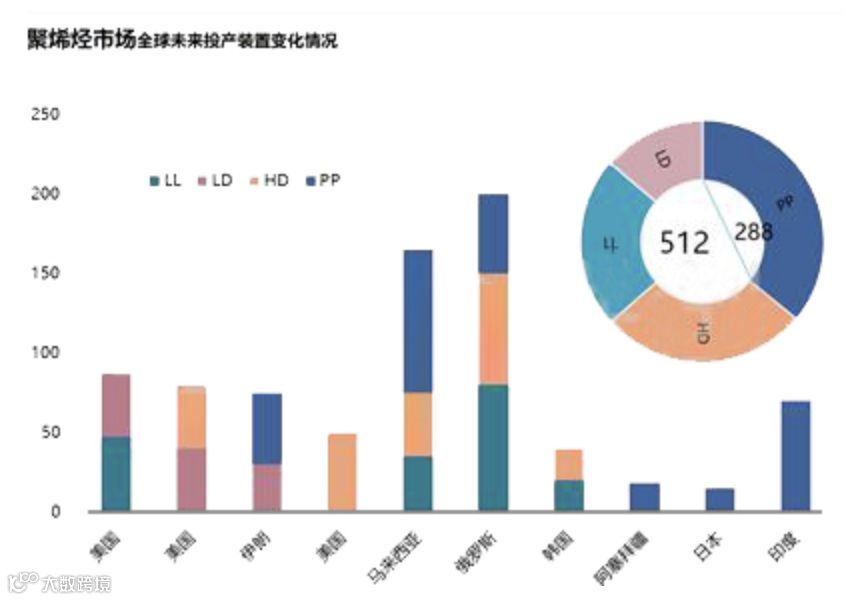 国外方面受页岩气革命带来的充裕而廉价的乙烷也催生越来越多的PE、PP装置上马,这其中PE明显多于PP,这也是因为近几年随着中国自有装置的快速上马挤压市场份额,外盘长期处于倒挂态势,美金资源较难有价格优势冲击国内市场。但中国人口基数众多,对塑料的需求量较发达的欧美国家还有一定差距,国外也越来越看好国内这块蛋糕,催生了较多的新型装置兴起。据不完全统计,2019-2020年PE有望上马的装置在512万吨,PP在288万吨,这其中美国及俄罗斯投产热情较高,其他为马来西亚、印度等。