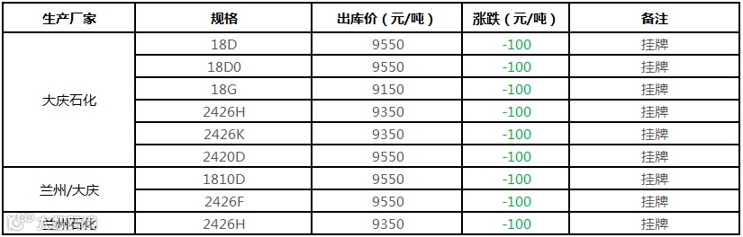 中油西北PE(兰州库)价格价格调整100-550元/吨!!!