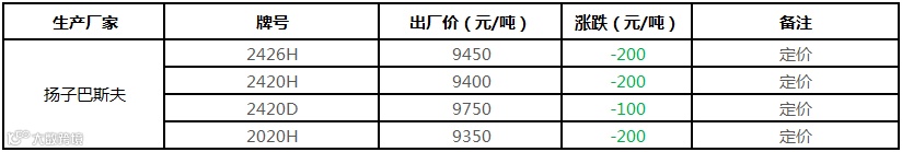 扬子巴斯夫LDPE价格下调100-200元/吨