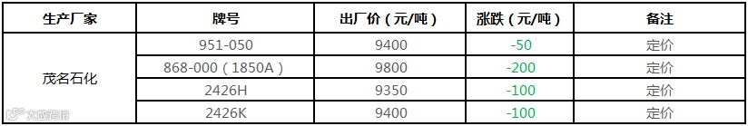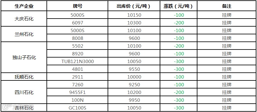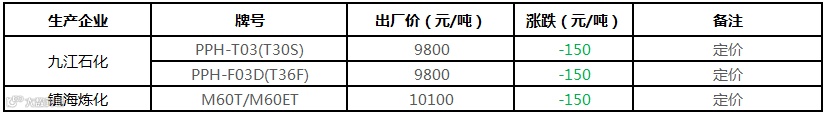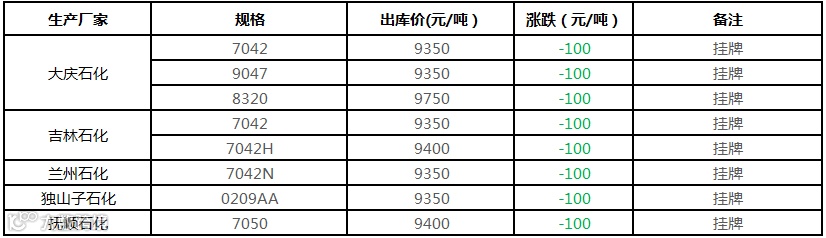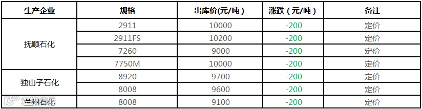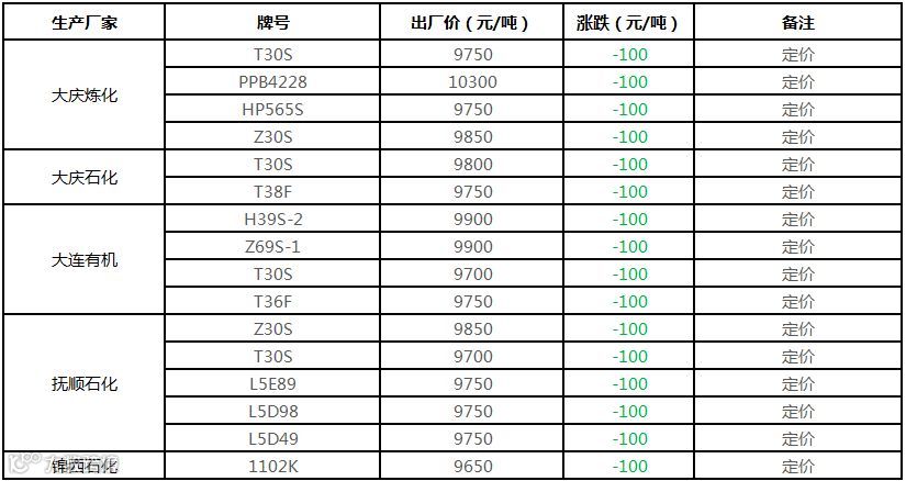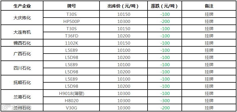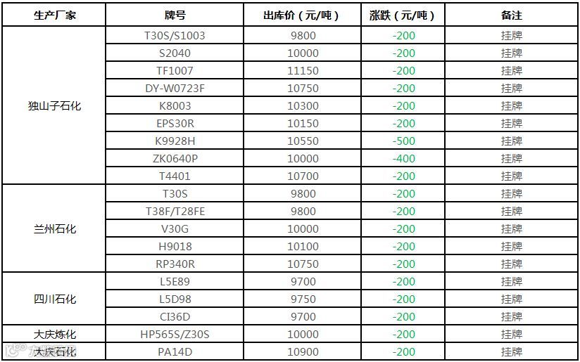 中油华南PP挂牌价格部分下调100-300元/吨!!!