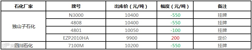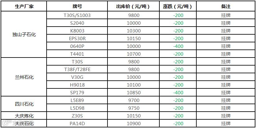 中油西南PP挂牌价格下调200-500元/吨!!!