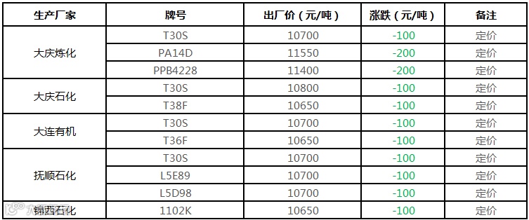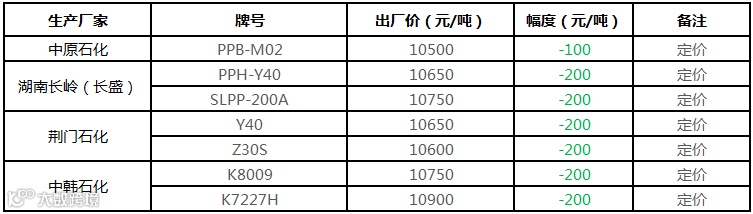 中油东北PP定价部分下调100-200元/吨!!!