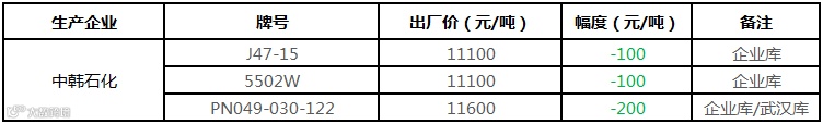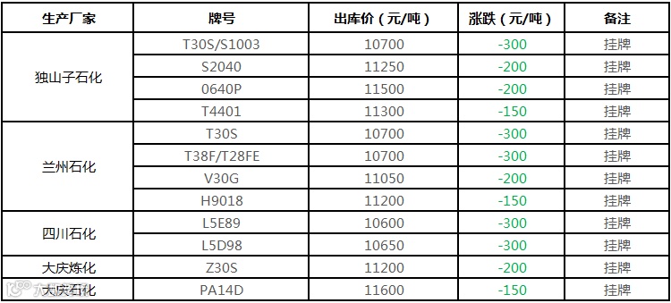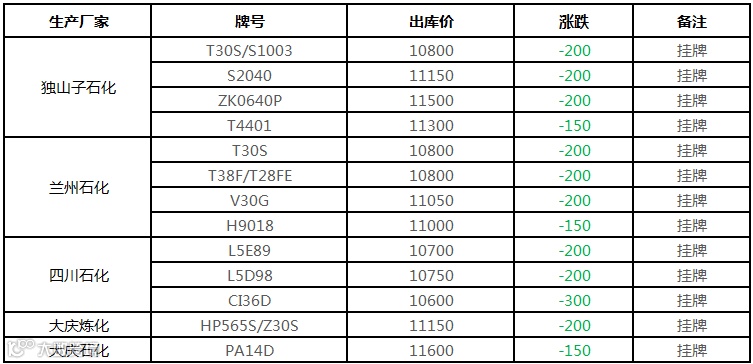 中油西南PP挂牌价格部分下调150-300元/吨!!!
