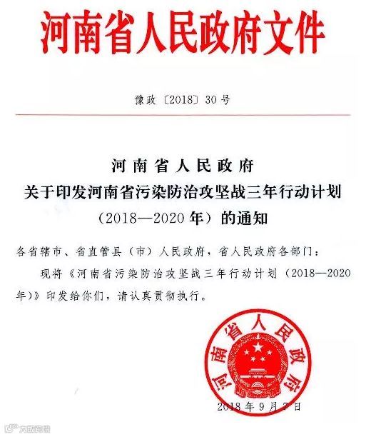 河南省污染防治攻坚战三年行动计划(2018-2020年)