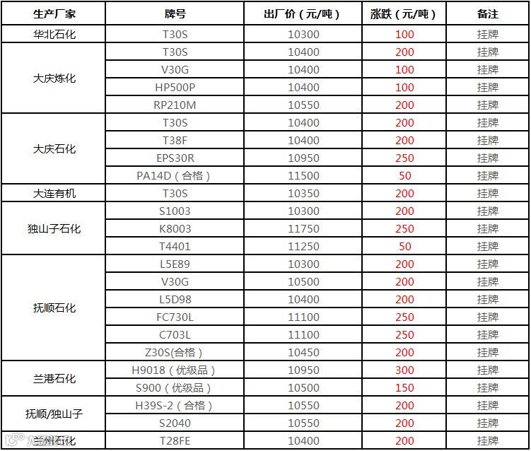 中油东北PP价格上调100元/吨!!!