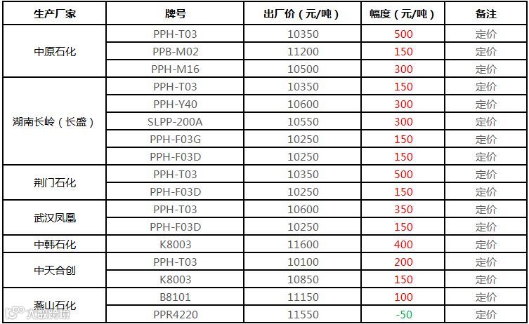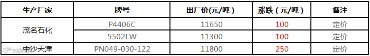 中油华东PP价格部分上调50元/吨!!!