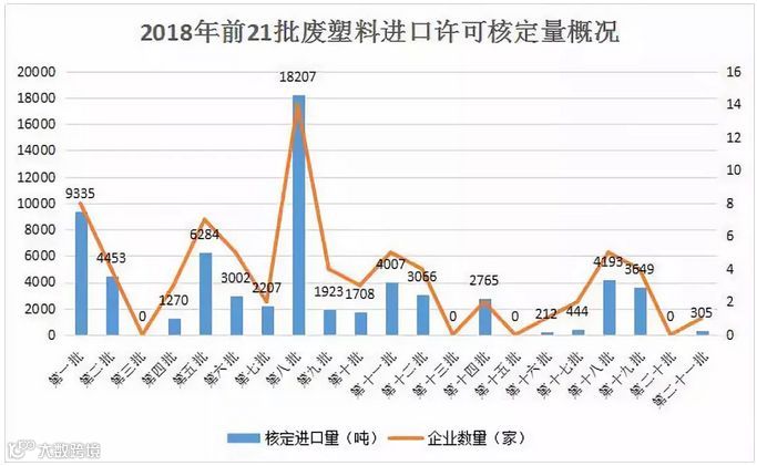 9月29日,固废中心公示了2018年第21批限制进口类产品明细。此次名单共有17家企业获批62.1917万吨,但废塑料仅只有一家来自天津的企业获批305吨!