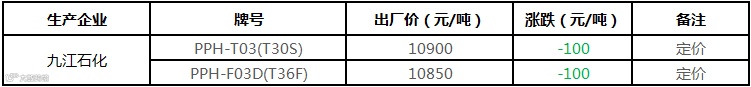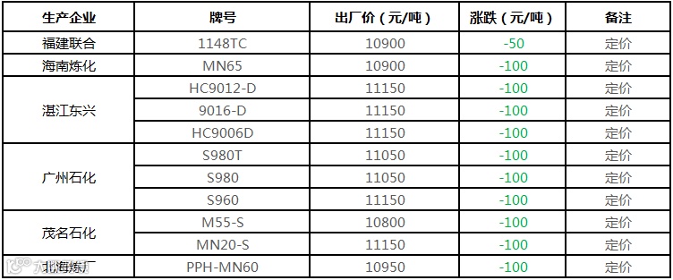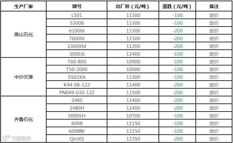 中石化华东PP个别牌号定价下调100元/吨!!!