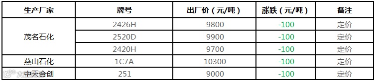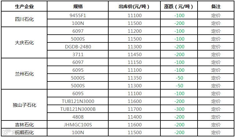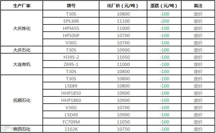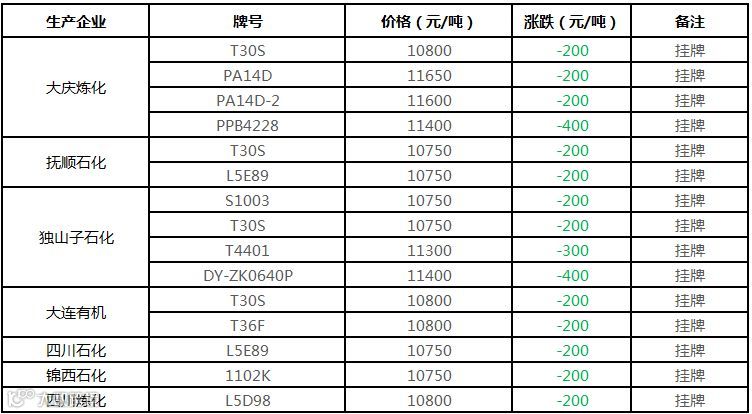 中油西南PP挂牌价格个别下调100元/吨!!!