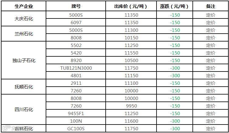 中石化华北HDPE部分定价下调100-200元/吨!!!