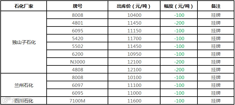 中石化华南LDPE/LLDPE部分定价下调100元/吨!!!