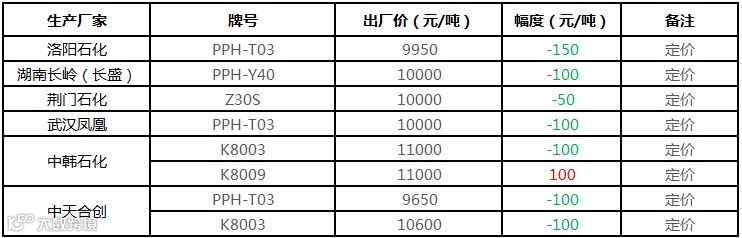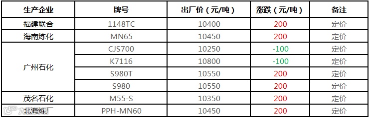 中油华南PP挂牌价格部分调整100-200元/吨!!!