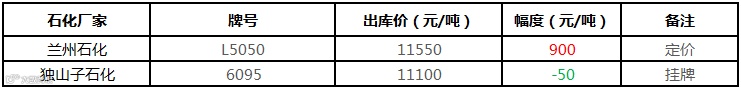 中油西北PE(兰州库)价格调整50-900元/吨!!!
