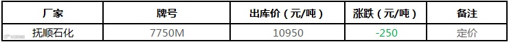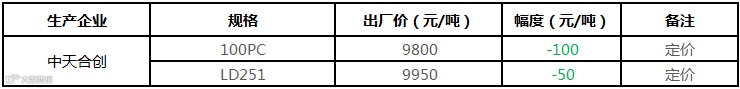 中化泉州炼厂PP下调:其中L5E89报价下调50元/吨至10000元/吨福建送到,L5E89-GD报价下调50元/吨至10000元/吨福建送到,L5D98暂停报价,H5250R暂停报价,LH7714-12暂停报价,H5380R-1福建送到价下调50元/吨至10200元/吨。此外,潮汕地区送到需加50元/吨运费。