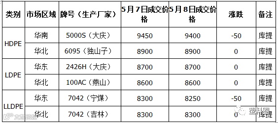 今日国内PE市场价格稳中局部走低。线性松动20-50元/吨,高压松动50元/吨,低压产品部分松动50-100元/吨。日内线性期货大量增仓后收长下影中阴线,现货市场信心明显降温。日内石化企业部分下调价格,成本面走跌,商家报盘跟跌。目前下游工厂买入不多,加之后市看空心态主导,需求端弱势制约下,日内市场成交不多。现国内LLDPE主流市场价格在8200-8300元/吨,LDPE主流市场价格在8400-9100元/吨,HDPE膜主流市场价格在8850-9500元/吨。