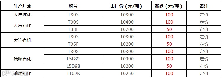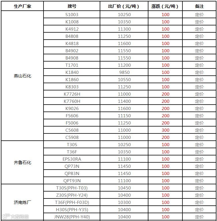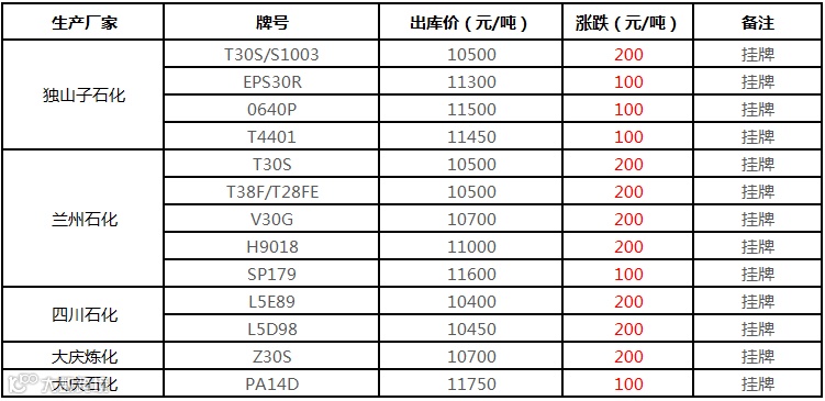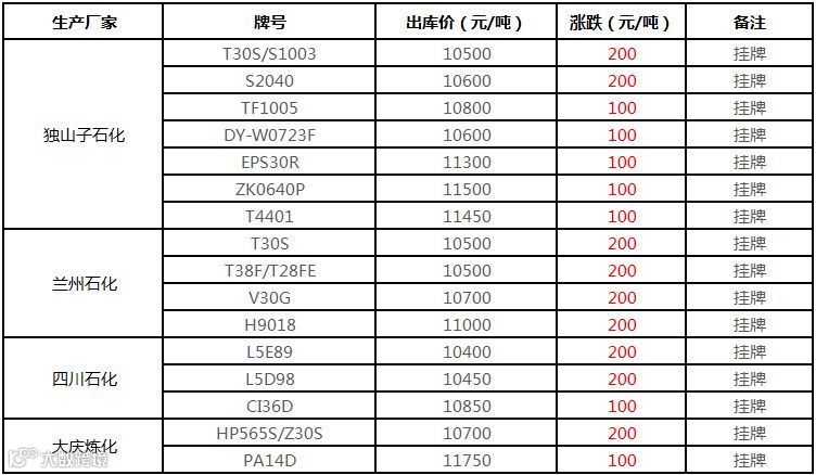 中油西南PP挂牌价格上调100-200元/吨!!!