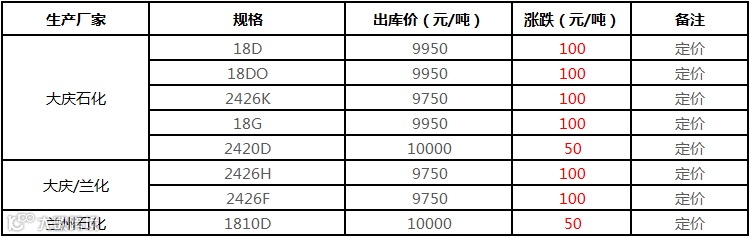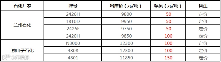 中油西北PE价格局部上调(兰州库)50-150元/吨!!!