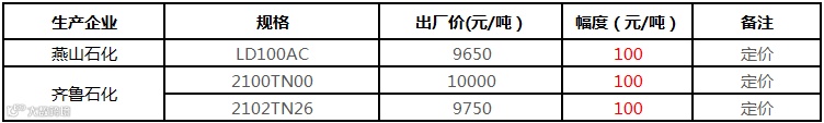 中石化华南LDPE部分定价上调100-150元/吨!!!