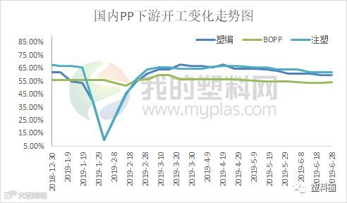 本月聚丙烯下游企业开工情况逐渐降低。其中塑编行业开工率在60%左右;注塑行业开工率在62%;BOPP行业开工率在54.3%左右。夏季高温天气下,工厂开工有所下滑,订单跟进情况欠佳,成品库存尚足。预计短线塑编企业开工维持窄幅调整走势。