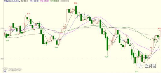 盘面情况:PP1909合约开盘8355元/吨,最低8310元/吨,最高8476元/吨,收于8466元/吨,涨73元/吨,涨幅0.87%。成交量减少至801058手,持仓量增加30454手至628794手。技术面来看, PP1909低开震荡走高,增仓收阳线,盘面资金流入0.816亿元。MACD(12,26,9) 指标中红色能量柱变长,DIFF与DEA处于0轴下方,能量喇叭口开口向上,短线上行动能增加。KDJ指标在超买区拐头向上,价格上涨支撑增强。压力位8500附近,支撑位8100附近。