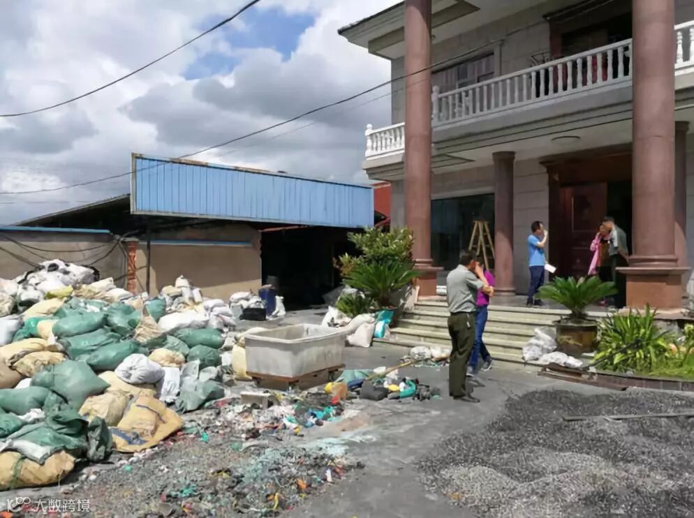 某非法废塑料加工点院子内堆放着大量废旧塑料,房内不断传来机器作业的“嗡嗡”声,空气中弥漫着刺鼻的味道