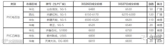 今日国内PVC市场价格继续提高。V1905期货高开后拉涨,突破60日、40日均线至6515高点,主力继续向09合约转移,05合约放量减仓收中阳线。PVC企业来看,各地区企业出厂价继续调涨,山东地区企业仍有大幅上调,部分货少企业暂封盘不报。其他区域低价上涨,高价暂稳,多数发货紧张,提货时间较长。现货市场来看,各主销区市场价格继续上行,各主销区受期货推涨提振明显,市场低价货源较少,且部分报价后迅速成交,有二次报价现象。下游制品企业来看,接单情绪尚可,但部分属于低价补库,有透支下月初需求情况出现。当前电石法5型主流价格参考6400-6600元/吨,乙烯料主流参考6600-7050元/吨上下,高型号货源价格高100-150元/吨。