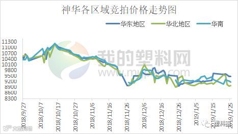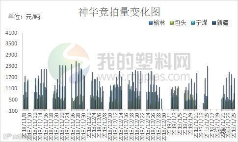 1月21-25日当周神华PP竞拍总量在17446.237吨,较去年同期28318.25万吨减少10871.98万吨,降幅在38.39%。其中神华榆林竞拍量2891 吨;神华包头竞拍量在2310吨;神华宁煤竞拍量在3815.237吨;神华新疆竞拍量在8430吨。