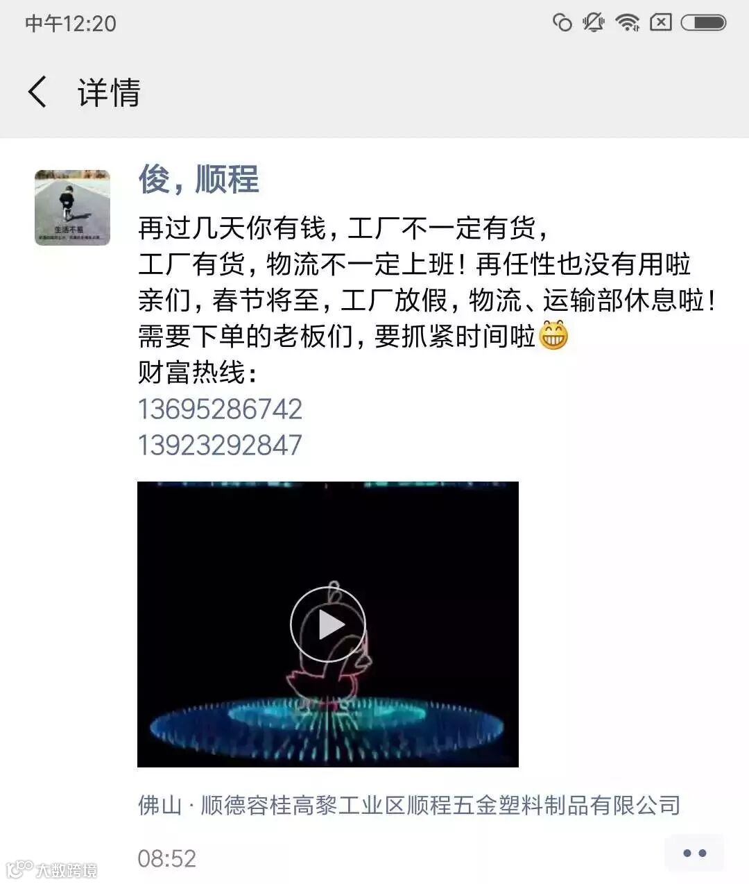 放假备注:万佳发物流二部春节放假通知:农历十二月十五日停止收货,二0一九年正月初十正式收货